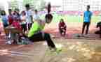 军训结束了,但是我们的狂欢才刚刚开始,军训汇演结束的下午,我们第一次换回了自己的便服,第一次感到如此的轻松。我们在此踏上田径场,但这次却没有训练,只有在军训后的狂欢!